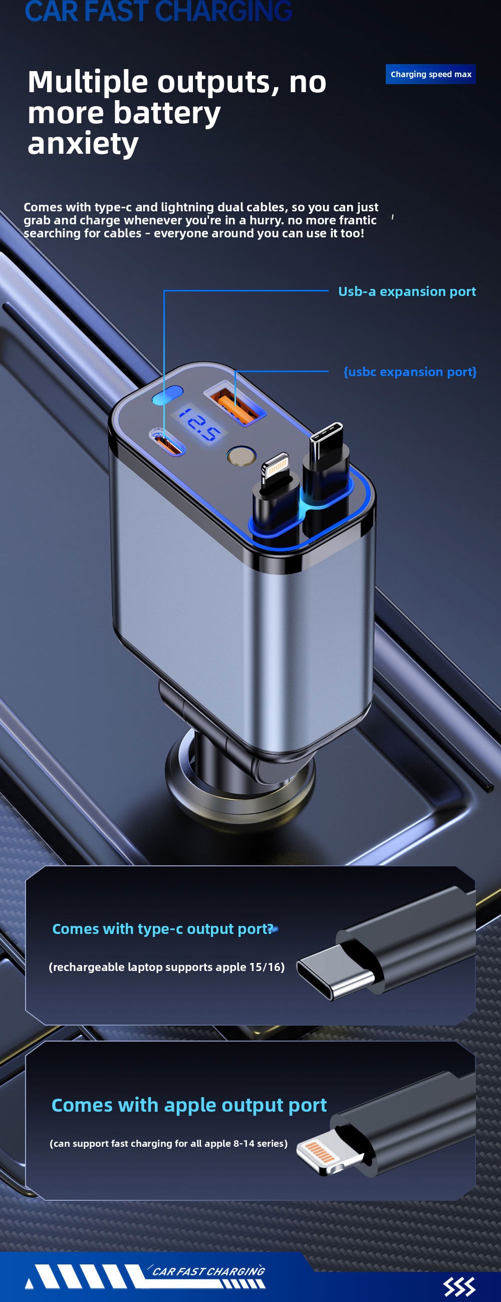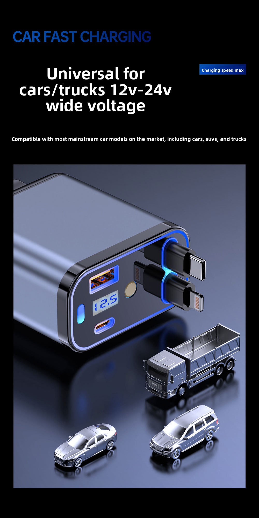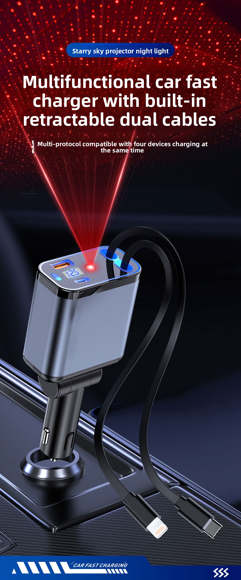 - Tags: 120w car charger, Automotive electronics, Car accessories, Charging accessories, Digital display car charger, Fast charging car charger, Multi port car charger, Qc3 car charger, Retractable car charger
