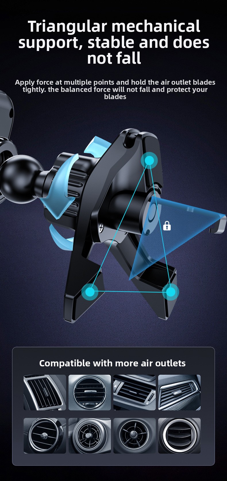 Secure Mounting: Includes suction cup and vent hook options with triangular load-bearing structure for stability
