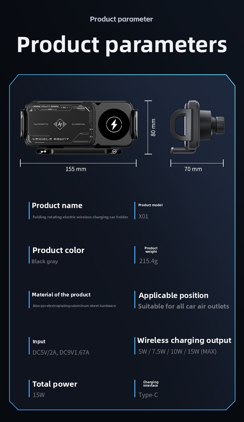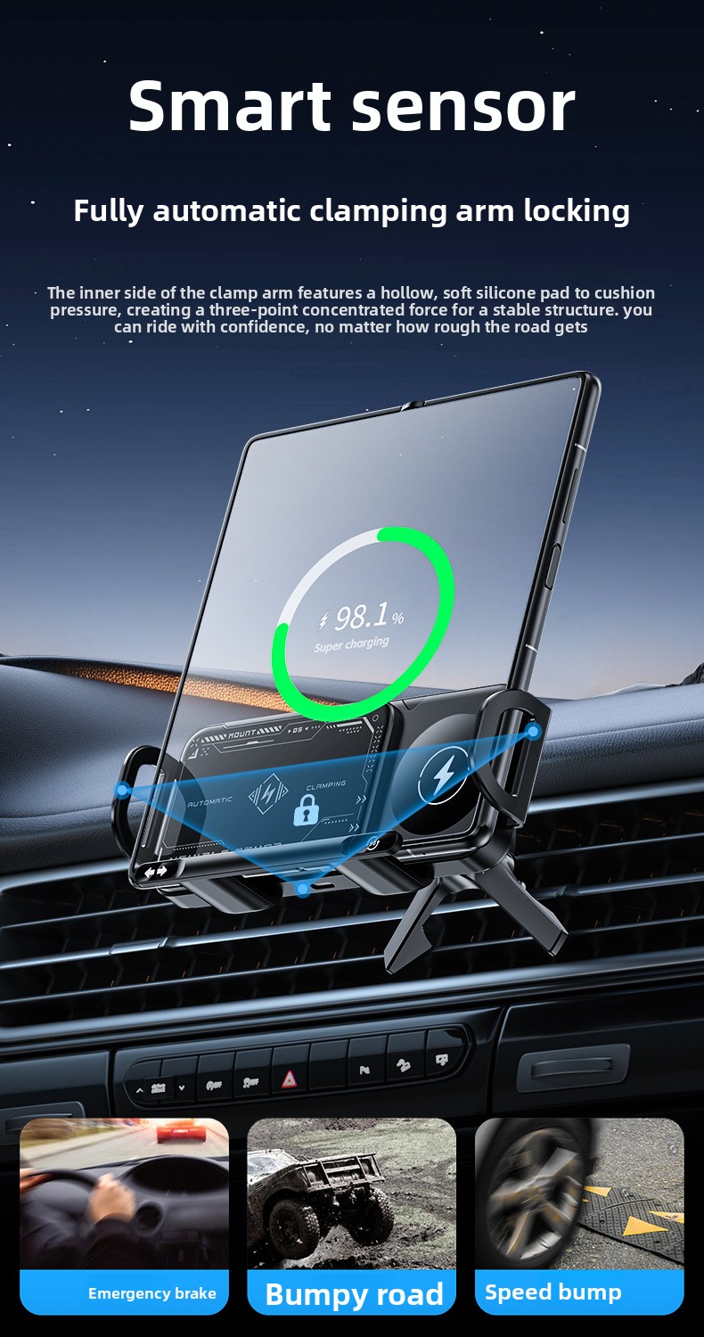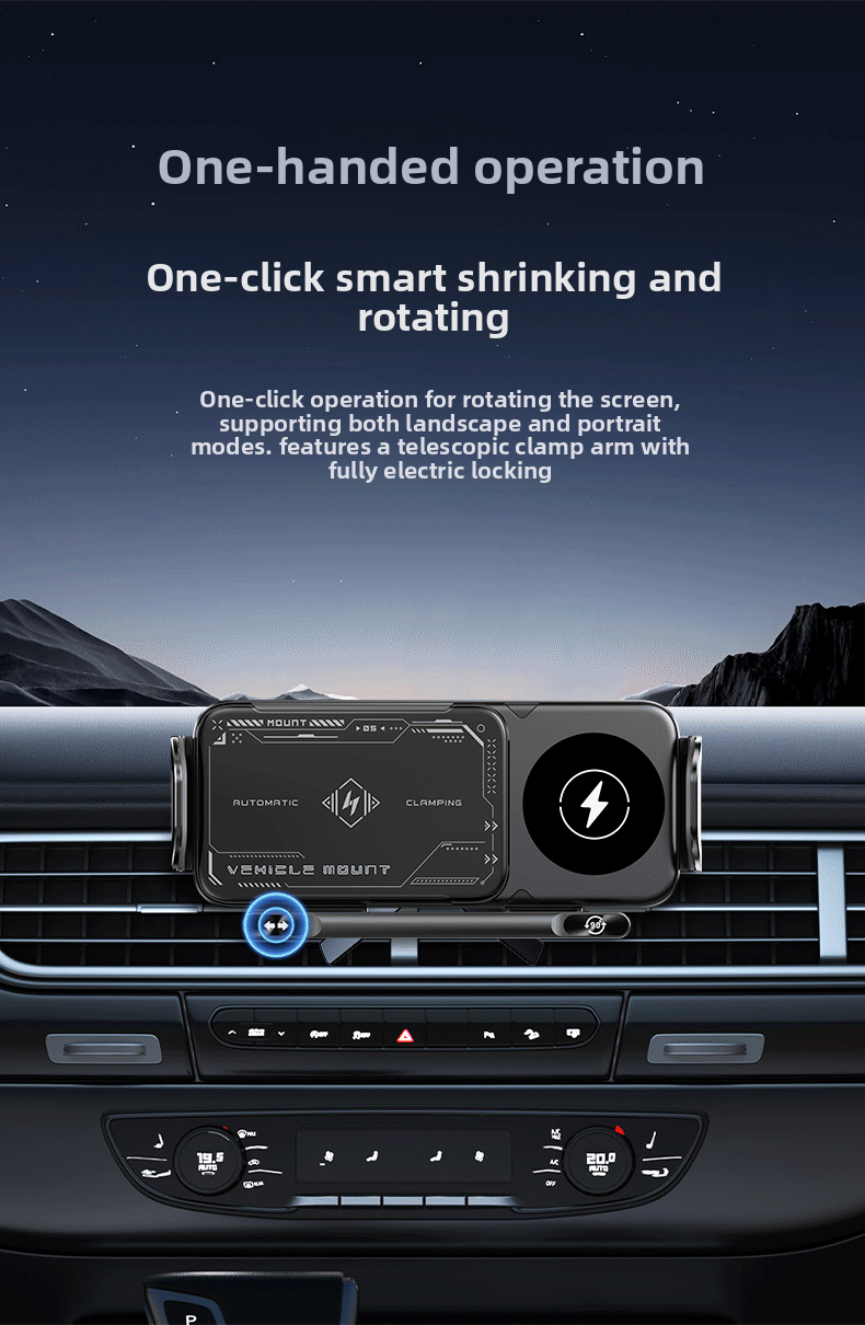 - Tags: 15w car charger, Auto clamp car charger, Automotive electronics, Car accessories, Hands free driving, Phone accessories, Phone holder for car, Wireless car mount, Wireless charging car mount
